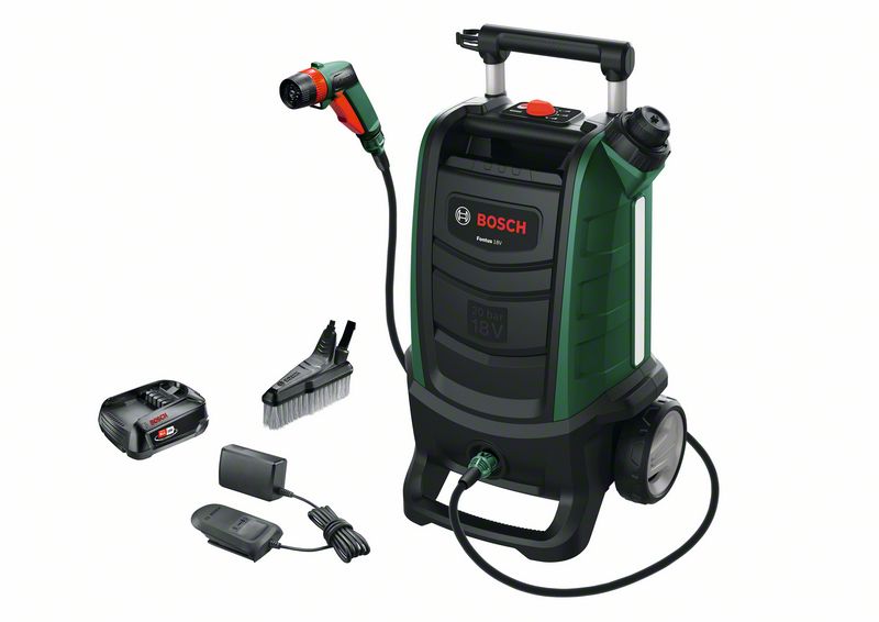 POWER FOR ALL: Jedan akumulator za celokupan sistem alata Home & Garden, Syneon tehnologija reguliše potrošnju energije i tako pruža optimalnu efikasnost i duže vreme rada, Akumulatorsko čišćenje kod kuće ili u pokretu, povezan na vodovodni sistem ili uz korišćenje ugrađenog rezervoara od 15 l, Idealan za održavanje dragocene imovine, od automobila i motocikala, do spoljašnje opreme i bicikala, Ručica koja se može produžiti i robusni točkovi za brzo podešavanje i lako manevrisanje, Skladište za dodatni pribor i držač mlaznice tokom rada za vrhunsku praktičnost, Višenamenska primena: četiri načina prskanja, podesivi pritisak vode i SmartBrush
