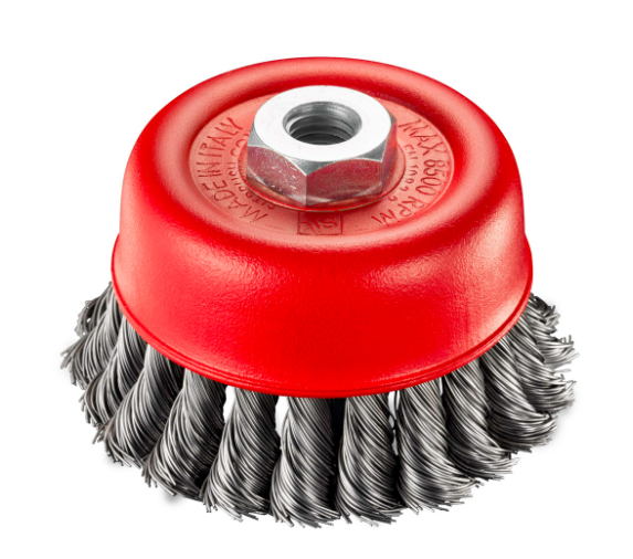 - ZB4082110020 pripada TZ seriji čašastih četki sa upletenom žicom, koje su namenjene za obradu površina gde je potrebna manje agresivna akcija četkanja. Za razliku od TU linije, TZ četke nemaju obruč (ojačanje), što im omogućava mekši i fleksibilniji rad — idealno za lakše čišćenje, uklanjanje rđe ili obaranje ivica na metalnim površinama.