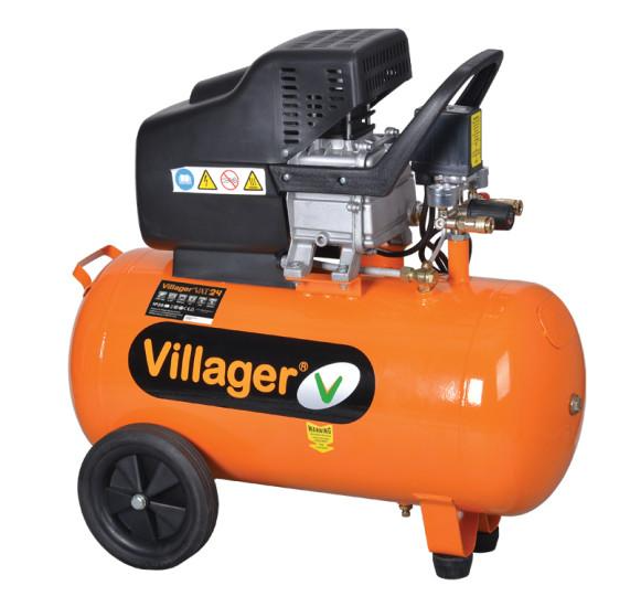 - Villager Vam nudi širok izbor klipnih vazdušnih kompresora sa ili bez podmazivanja uljem, sa kaišem ili direktnim pogonom, sa rezervoarom zapremine od 24 do 500 litara i maksimalnim pritiskom do 10 bara.
