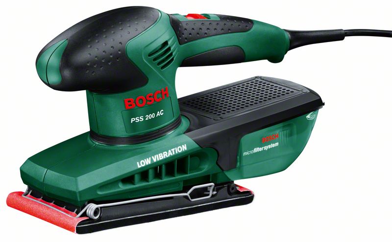 Idealno rešenje za uglove, ivice i ravne površine srednje veličine, Kutija za prašinu s mikrofilterom smanjuje količinu prašine i tako obezbeđuje čistiji radni prostor, Pribor za brušenje menjaj brzo i lako pomoću SDS sistema, Sistem prihvata na čičak omogućava jednostavnu promenu brusnog papira, Za tvrdo drvo, meko drvo, lakirane, ofarbane, kamene i metalne površine