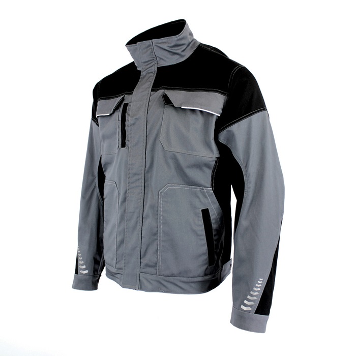 Materijal: 64% poliestersko vlakno, 34,5% pamuk, 1,5% elastan, 245g/m2; Održavanje: pranje u mašini na 60°C; ; Radna jakna PACIFIC FLEX kroja koji savršeno pristaje.Ima visoku kragnu, 7 funkcionalnih džepova. Zatvara se patent zatvaračem, rukavi anatomski oblikovani, CORDURA pojačanja džepova, reflektujući print. Uži, ergonomski kroj.; ; Boja: siva; Veličina: 48-62; Norma: EN 13688; # MADE IN EUROPE ; ### Material: 64% polyester, 34,5% cotton, 1,5% elastane 245g/m2; Care instructions: machine wash 60°C; ; Work jacket PACIFIC FLEX is a work jacket with perfectly fitting cut. It has standing collar. Opening zipper, anatomically shaped sleeves, 7 functional pockets with CORDURA reinforcement. Printed reflective elements. Slimmer, ergonomic fit.; ; Color: grey; Size: 48-62; Standard: EN 13688; # MADE IN EUROPE ; ###