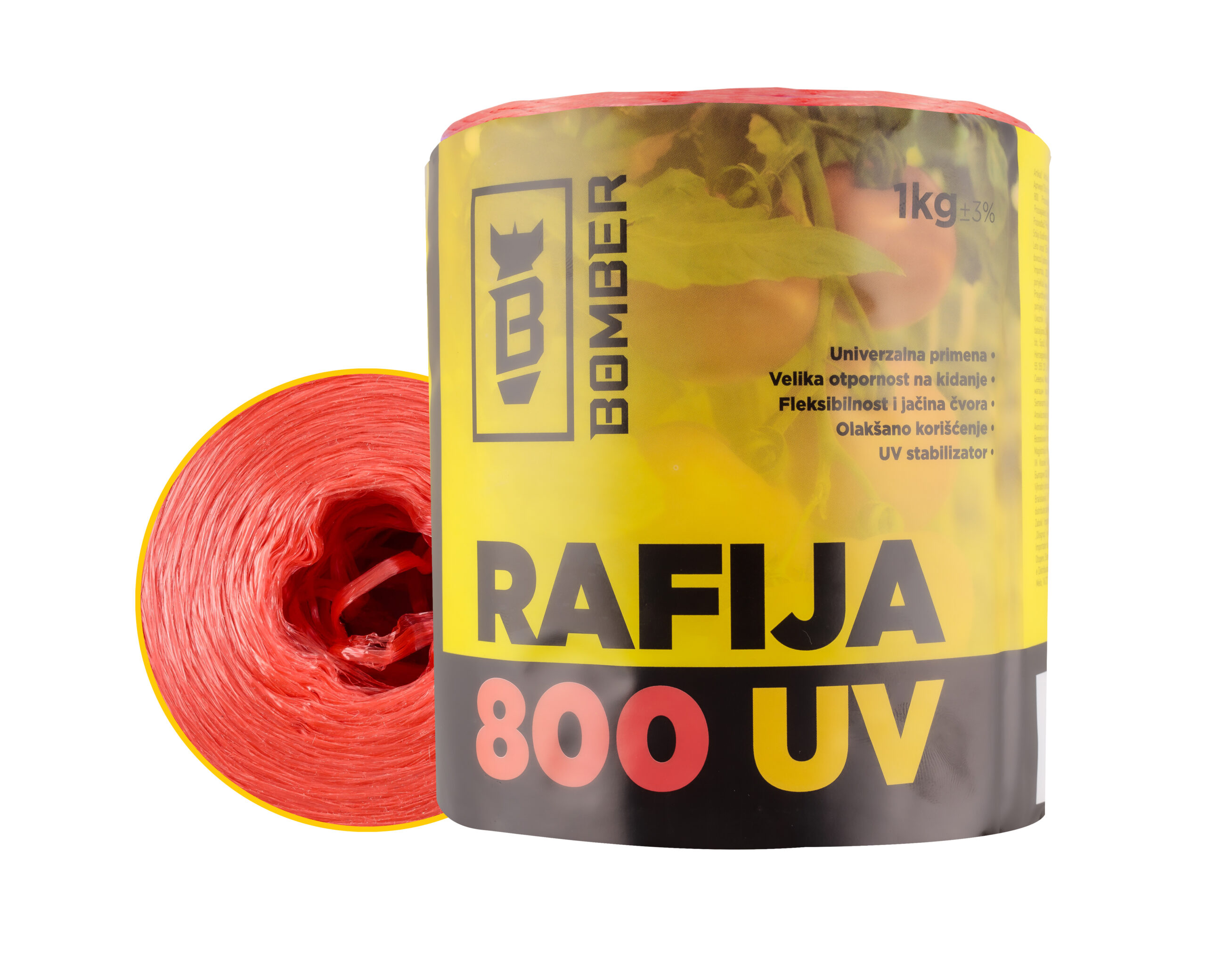 Rafija crvene boje sadrži UV stabilizator. Primenjuje se u povrtarstvu, vinogradarstvu i voćarstvu.