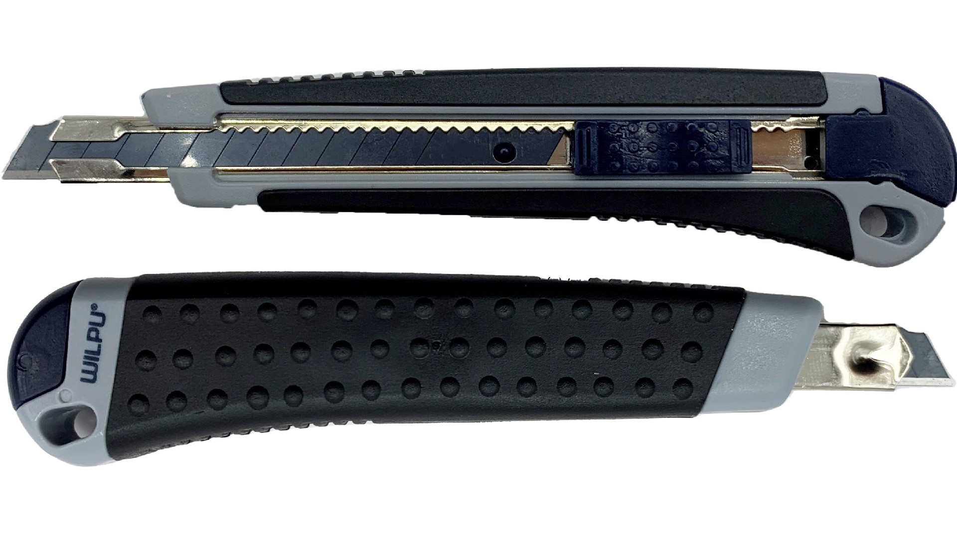 Stabilna, nerđajuća vodilica od galvanizovanog metala sa automatskim zaključavanjem oštrice. Ekstra oštra 9 mm Black Diamond oštrica za lomljenje, namenjena za precizne radove, sa 12 segmenata za lomljenje i 13 mogućnosti korišćenja. Ergonomska 2-komponentna drška od plastike otporne na kiselinu i udarce, sa prijatnim, protivkliznim gumenim omotačem. Protivklizni i opruženi klizač za brzo pomeranje napred i nazad, sa automatskim zaključavanjem oštrice.